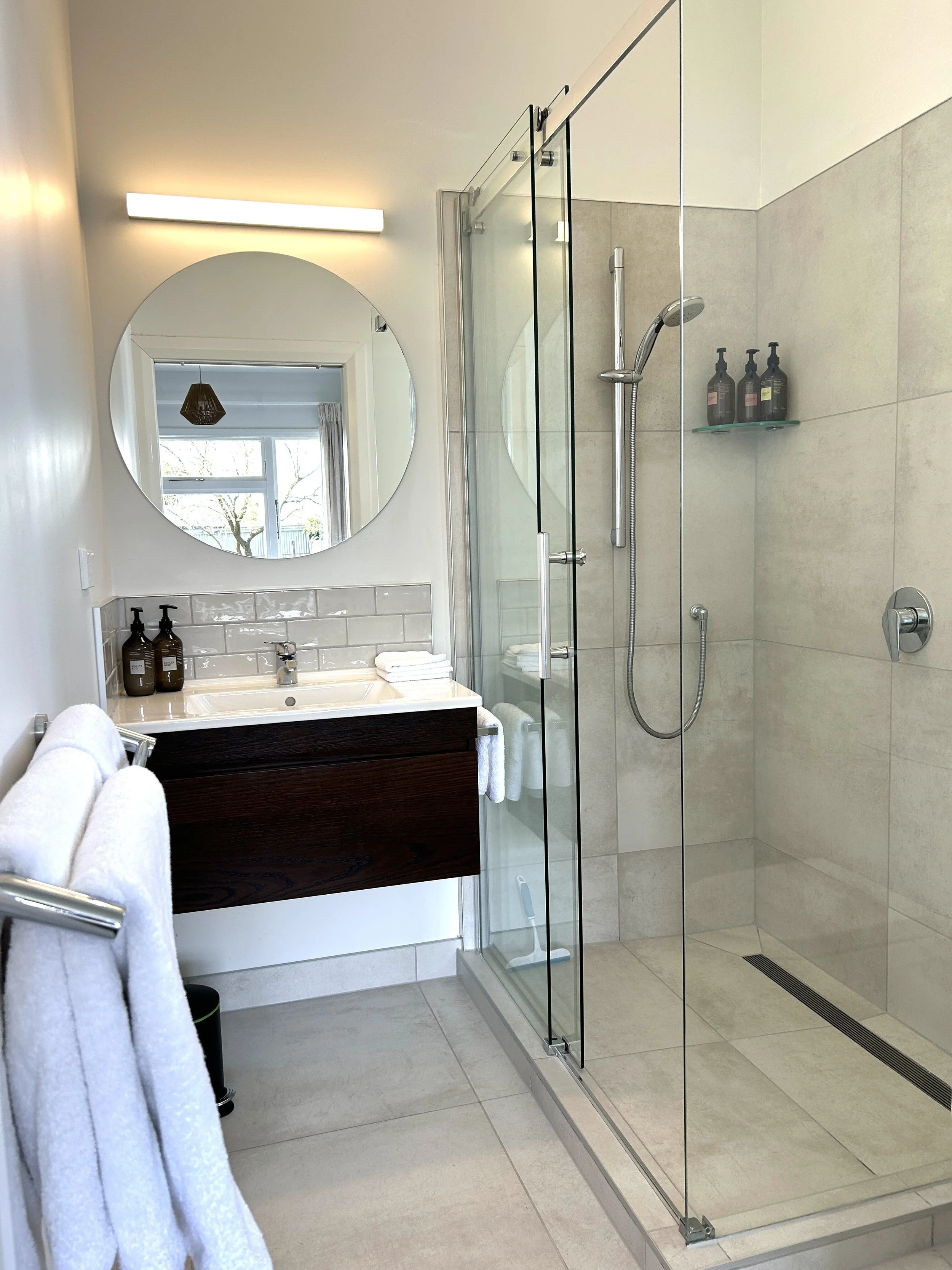 Two modern bathrooms, elegant tiled showers, plush towels, premium linen, and a select range of complimentary toiletries — all meticulously cleaned and presented with care. Add the convenience of a well-equipped kitchen stocked with everyday essentials, and you have everything you need for a relaxing and memorable stay.